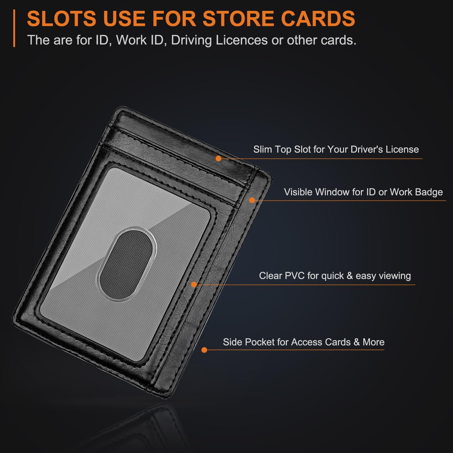 With multiple card slots and a convenient front pocket, you can easily organize your cards, cash, and IDs without adding bulk to your pocket or purse. The slim design fits comfortably in any pocket, while the smooth leather finish adds a touch of elegance to your everyday carry.